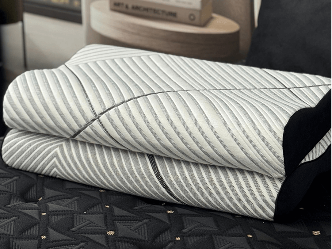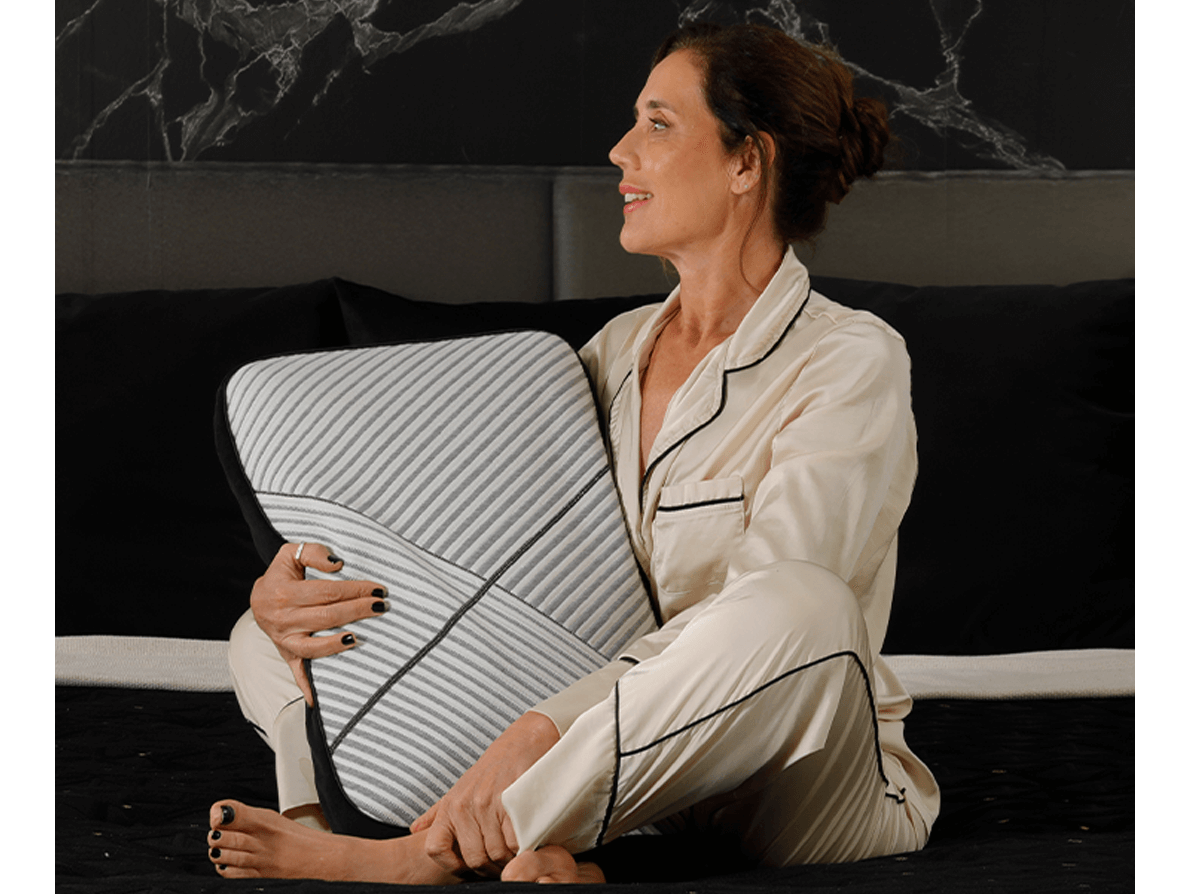 Con un diseño moderno de líneas diagonales y una funda de tejido de punto que aporta suavidad y frescura, esta almohada no solo es visualmente atractiva, sino que también favorece la circulación del aire. Al retirar la presión, la almohada vuelve a su forma original, recuperando íntegramente la totalidad de su volumen. El packaging de esta almohada es 100% reciclable.