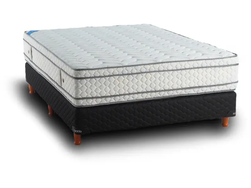 - Núcleo: Resortes bicónicos de acero templado con marco perimetral de espuma PU Topacio D30 de alta densidad y manta de confort de espuma PU Topacio HR D50 efecto látex