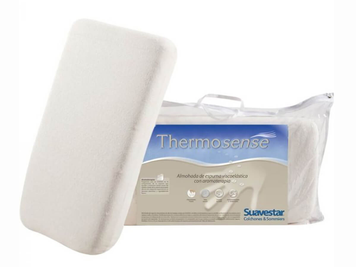 Thermosense -Almohada de espuma viscoelástica de alta tecnología creada por la NASA -Sensible a la temperatura que se amolda perfectamente al contorno de la cabeza, cuello y hombros. -Distribuye el peso de manera uniforme en toda su superficie eliminando los puntos de presión facilitando así la circulación sanguínea y la relajación de los músculos. -Reduce los movimientos durante el descanso logrando un sueño ininterrumpido con una agradable sensación de ingravidez. -Se reconoce por su lenta recuperación a la compresión, por lo que vuelve a su estado inicial sin sufrir deformación alguna.