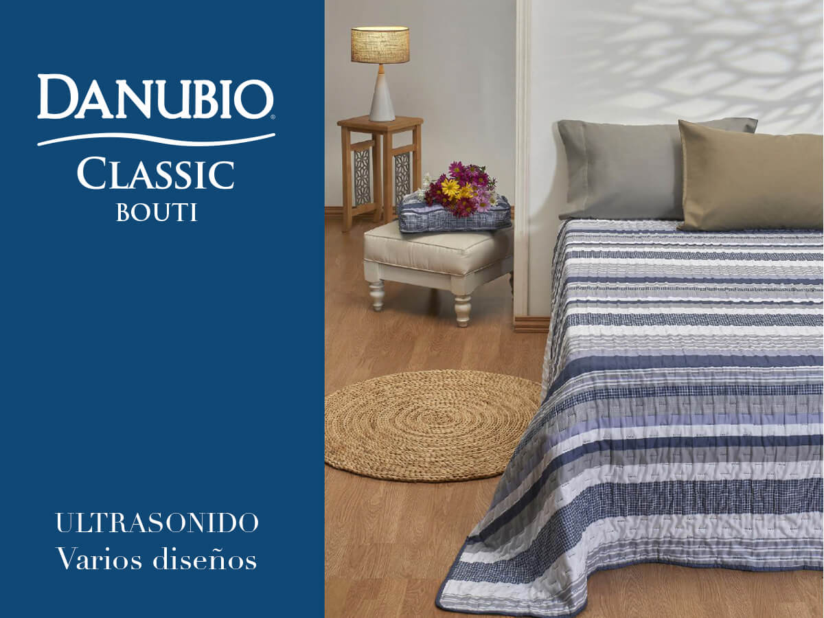 Cubrecama DANUBIO BOUTI CLASSIC confeccionado en tela 80 gms microfibra estampada ultrasonido, relleno 100 grs poliéster.