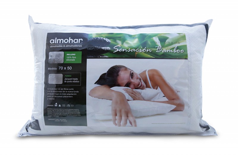 La almohada SENSACIÓN BAMBOO está confeccionada con una funda en tela Jacquard que facilita la circulacion de aire, ofrece mayor elasticidad y suavidad al tacto. Su relleno de fibras siliconadas absorben perfectamente el movimiento brindando mayor confort y una adecuada adaptación. Con gran capacidad de recuperación, la almohada vuelve a su forma original sin deformarse. Ideal para dormir boca arriba y de lado.