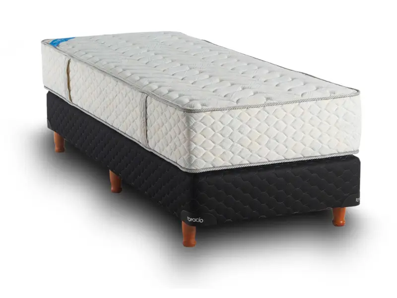 - Núcleo: resortes bicónicos de acero con marco permitral y mantas de confort de Espuma PU Topacio D30 de alta densidad
